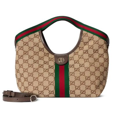 Gucci Giglio系列推出小号版本。这款托特包亮相于品牌在佛罗伦萨发布的2026早春时装秀,致敬品牌意大利根源,彰显传承与革新精神。空间宽敞的设计以GG帆布面料匠心打造,饰以织带滚边,配有可拆卸手拿包,更添时尚魅力。